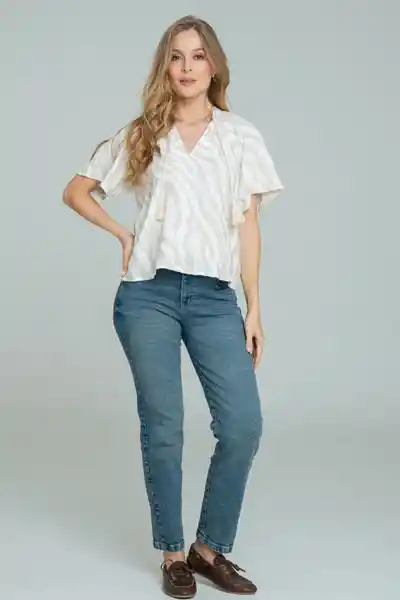 Mom Fit Stretch Tiro Medio Con Manualidad Cinco Bolsillos.