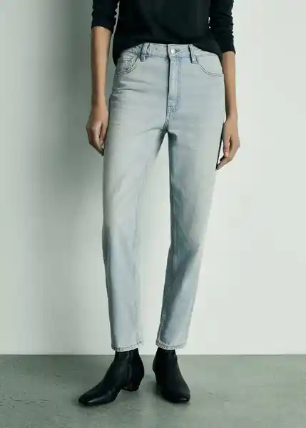 Cierre de Cremallera y Botón, Cinco Bolsillos, Disponible Plus, Largo Interior 69 cm, Mom-Fit, Tejido de Algodón Estilo Tejano Vaquero, Tiro Alto, Trabillas - 77042914_Di.