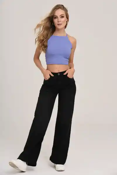 En Denim Con Proceso de Lavado Cinco Bolsillos Botón y Cierre Frontal Bota Ancha.
