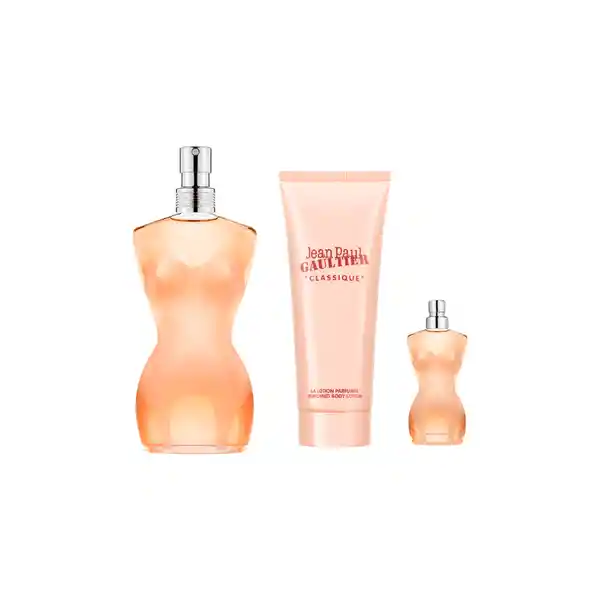 Kit Contiene 3 Unidades. Agua de Toilette Classique 100 mL + Loción Corporal 75 mL + Agua de Toilette Classique Mini 6 mL.