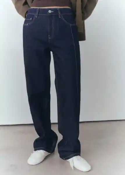 Cierre de Cremallera y Botón, Cinco Bolsillos, Costuras Decorativas, Diseño Largo, Diseño Recto, Tejido de Algodón Estilo Tejano Vaquero, Tiro Medio, Total Look - 77029078_Ts.