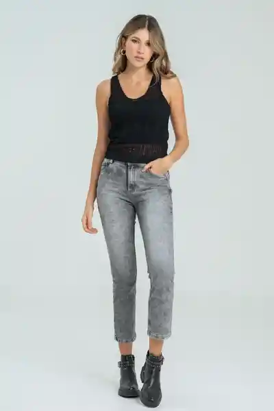 Recto Stretch Tiro Alto Tono Gris Con Manualidad Cinco Bolsillos.