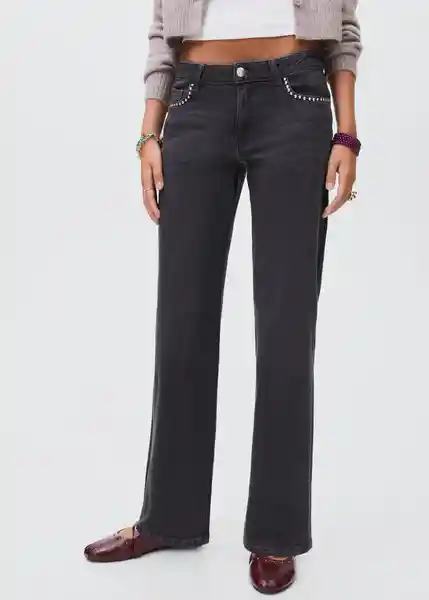 Cierre de Botón y Cremallera Detalle de Tachuelas Diseño Largo Diseño Recto Dos Bolsillos Laterales Tejido de Algodón Tejido Elástico Trabillas Para Cinturón - 17062912_Tn.