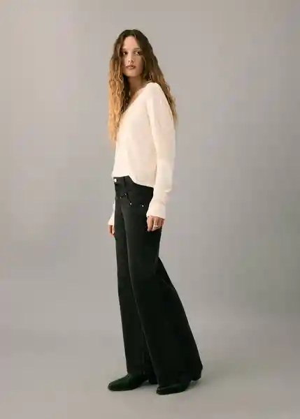 Cierre de Botón y Cremallera Diseño Wideleg Dos Bolsillos de Parche en la Parte Posterior Dos Bolsillos Laterales Fantasia Tachuelas Tejido 100% Algodón Tiro Cintura Low Waist Total Look Trabillas Para Cinturón - 27092543_Tn.