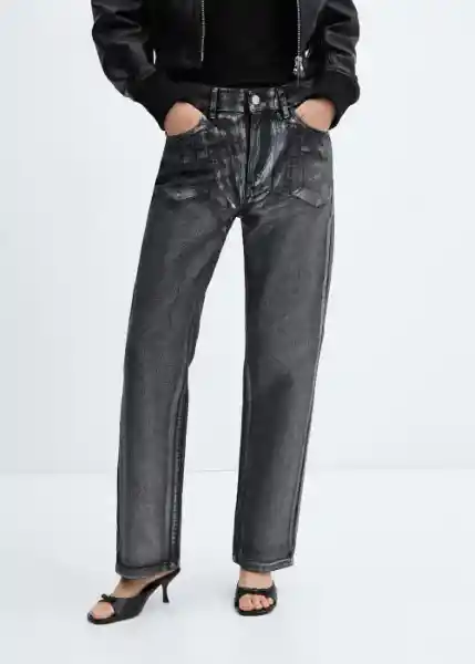 Cierre de Cremallera y Botón Cinco Bolsillos Diseño Recto Efecto Metalizado Largo Interior 74 cm Tejido de Algodón Estilo Tejano Vaquero Tiro Alto Trabillas - 57018277_99.