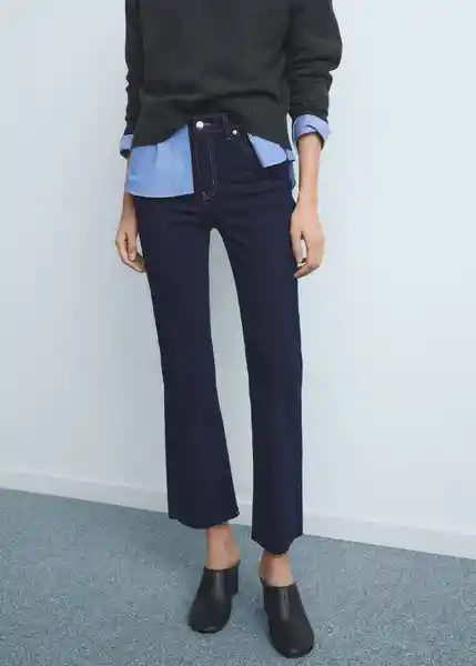 Cierre Delantero de Cremallera y Botón Cinco Bolsillos Diseño Crop Disponible Plus Estilo Flare Largo Interior 65 cm Tejido de Algodón Estilo Tejano Vaquero Tejido Elástico Tiro Medio Trabillas - 27011241_Ts.