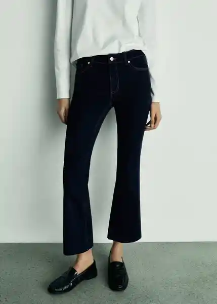 Cierre de Cremallera y Botón, Cinco Bolsillos, Diseño Acampanado, Diseño Crop, Disponible Plus, Estilo Flare, la Modelo Mide 178 y Lleva Una Talla 36, la Modelo Mide 181 y Lleva Una Talla 36, Largo Interior 65 cm, Tejido de Algodón Estilo Tejano Vaquero, Tejido Elástico, Tiro Alto, Trabillas - 77025652_Ts