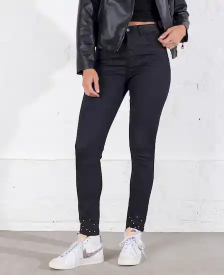 491D022 100% Algodón Tiro Súper Alto Azul Índigo Oscuro