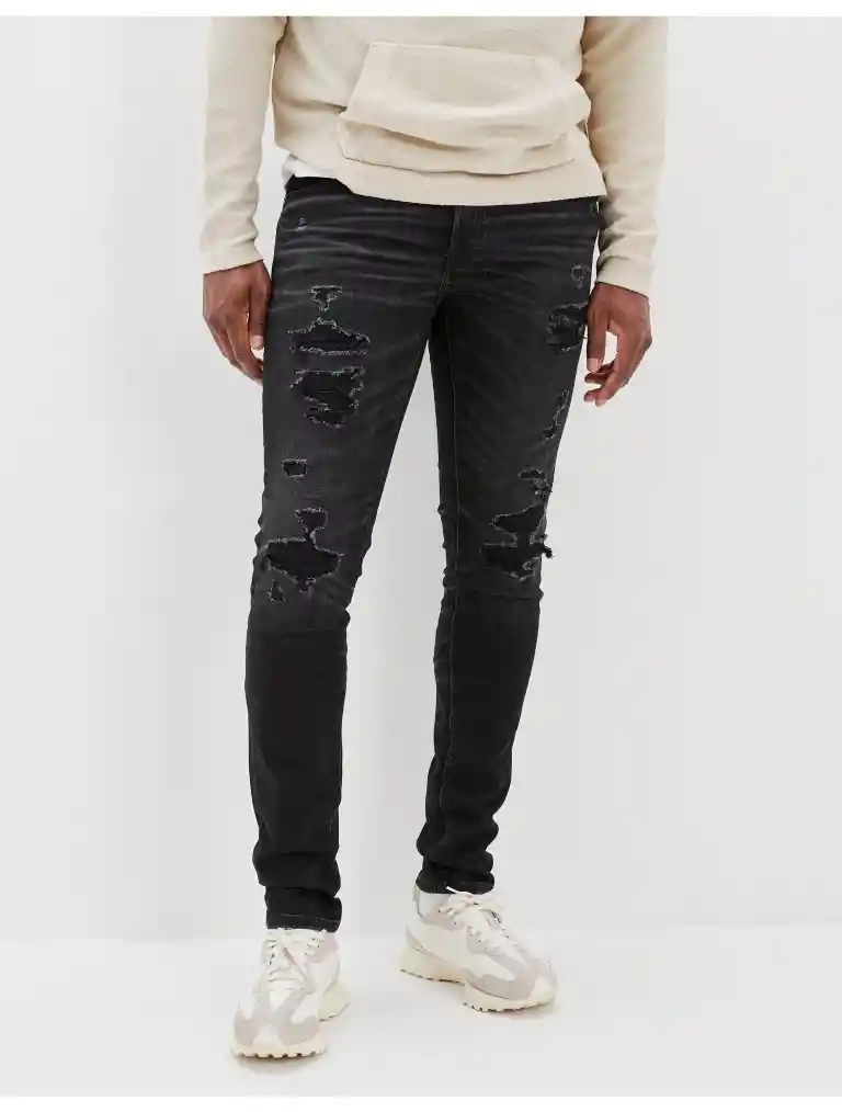 Un Skinny Throughout Que no Deja Espacio a la Incomodidad Airflex + Look Auténtico Denim Con Mayor Flexibilidad Ligera y Confort Alto Grado de Stretch Que Mantiene su Forma Lavado Negro Parchado Style: 0119-6209 96% Algodón 3% Poliéster 1% Elastano.