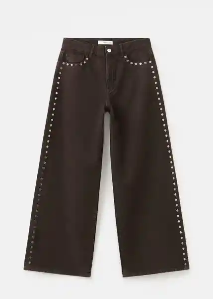 Cierre de Botón y Cremallera Cinco Bolsillos Detalle de Tachuelas Diseño Largo Diseño Wide Leg Tejido de Algodón Estilo Tejano Vaquero Tiro Medio Trabillas - 27014101_32.