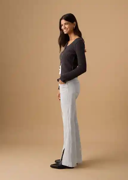 Abertura en el Bajo Parte Delantera Cierre de Botón y Cremallera Detalle Costuras Diseño Largo Dos Bolsillos de Parche en la Parte Posterior Dos Bolsillos Laterales Estilo Flare Tejido de Algodón Tejido Elástico Tiro Cintura Low Waist Trabillas Para Cinturón - 27011272_Tg.