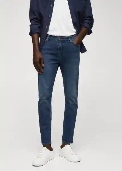Cierre de Cremallera y Botón Cinco Bolsillos el Modelo Lleva Una Talla 42 Estilo Crop Estilo Tejano Vaquero Lavado Oscuro Tapered Fit: Corte Ancho en la Parte Superior Que se va Estrechando de la Rodilla al Tobillo Tejido Mezcla Algodón y Lyocell Trabillas Para Cinturón - 57014408_Bb.