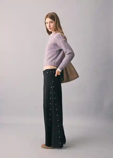 Cierre de Cremallera Diseño Largo Diseño Wideleg Tachuelas Decorativas Tejido 100% Algodón Tiro Cintura Regular Waist - 17048267_Tn.