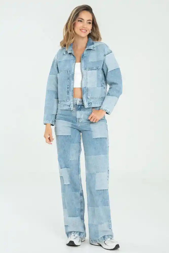 Jeans en denim 100% algodón, construcción dobby, tiro alto, tono medio con manualidad, cinco bolsillos, bota recta.