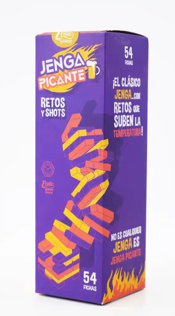 JENGA PENSADO PARA GRUPOS DE AMIGOS +18 (NO TIENE RETOS SEXUALES) Jenga Picante – Retos y Shots ¡El clásico juego de torre, ahora con un giro atrevido y divertido! Jenga Picante es el juego perfecto para encender la noche con amigos. Con 54 fichas llenas de retos calientes y desafíos que te harán reír, sonrojarte y tomar uno que otro shot, este juego no es para tímidos… ¡es para valientes! ¿Cómo se juega? Arma la torre. Saca una ficha con una sola mano. Cumple el reto subido de tono o toma el shot. Coloca la ficha en la parte superior sin tumbar la torre. Pierde quien tumbe la torre… y tendrá que cumplir el reto que el grupo decida. No es solo para parejas: ¡es para todos! Ideal para fiestas, reuniones o noches de juegos con tu grupo más atrevido. Recomendado para mayores de 18 años.