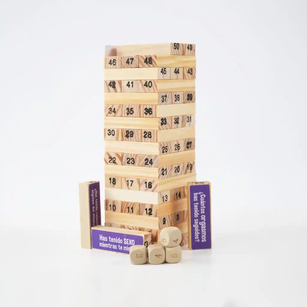 🔥 Jenga Picante: Retos y Shots 🔥 ¡La torre que pondrá a prueba tu equilibrio… y tu picardía! ¿Te atreves a jugar sin sonrojarte? Jenga Picante es una versión atrevida y divertida del clásico juego de torre, ideal para romper el hielo, encender la noche y salir de la rutina. Cada ficha incluye un reto candente, una pregunta íntima o un shot obligatorio. ¡Nunca sabes lo que te va a tocar! Perfecto para jugar en pareja o con amigos adultos (18+), este juego convierte cualquier reunión en una experiencia llena de risas, atrevimiento y mucho calor. Ideal para despedidas, citas, fiestas, o simplemente una noche diferente. Contiene: