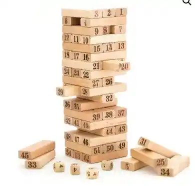 "¡El clásico juego de mesa Jenga en madera está aquí para brindarte diversión en cualquier lugar! Tamaño mediano.