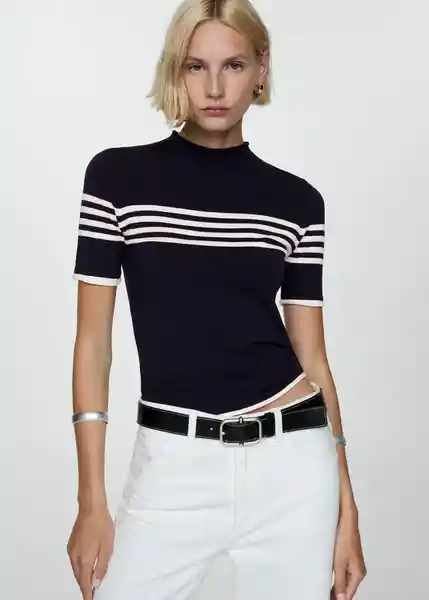 Cuello Redondo, Diseño de Rayas, Diseño Recto, Disponible Plus, la Modelo Mide 182 cm y Lleva Una S, Manga Corta, Tejido de Punto Fino - 77095637_56.
