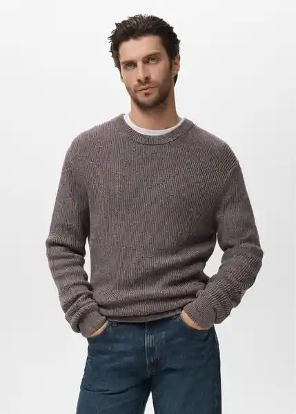 100% Algodón Cuello Redondo Cuello Puños y Bajo en Canalé el Modelo Mide 185 cm y Lleva Una Talla M Manga Larga Con Puños Elásticos Punto Medio Silueta Recta Tejido Jaspeado - 17005978_77.