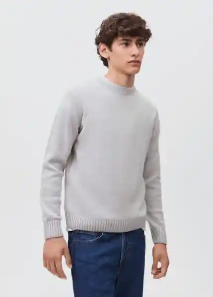 Cuello Redondo Cuello Puños y Bajo en Canalé Diseño Recto Manga Larga Tejido de Algodón Tejido de Punto - 17055818_92.