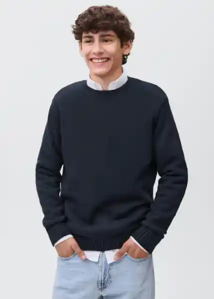 Cuello Redondo Cuello Puños y Bajo en Canalé Diseño Recto Manga Larga Tejido de Algodón Tejido de Punto - 17035819_56.