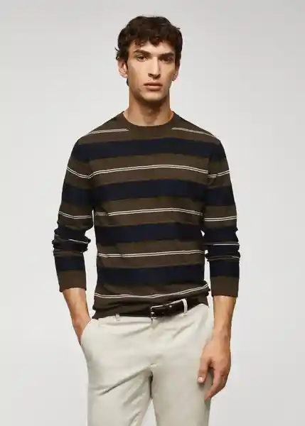Cuello Redondo el Modelo Mide 190 cm y Lleva Una Talla M Estampado de Rayas Horizontales Manga Larga Regular Fit Tejido de Algodón Tejido de Punto Fino - 57004403_36.