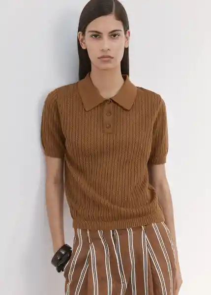 Cierre Delantero Con Tres Botones Cuello Polo Diseño Recto Manga Corta Tejido 100% Algodón Tejido de Punto Fino Con Calados - 27005829_17.