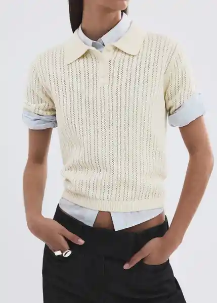 Cierre Delantero Con Tres Botones Cuello Polo Diseño Recto Manga Corta Tejido 100% Algodón Tejido de Punto Fino Con Calados - 27005829_05.