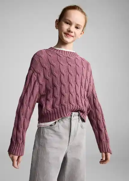 Cuello Redondo Diseño Recto Manga Larga Punto Trenzado Tejido Con Algodón - 87020458_75.