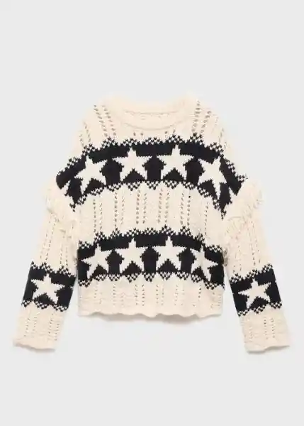 Cuello Redondo Diseño de Estrellas Diseño Recto Manga Larga Panel de Flecos Tejido de Crochet - 17026348_02.