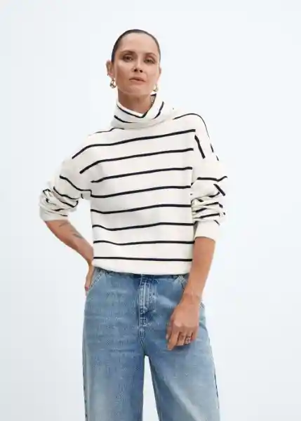 Cuello Cisne Diseño Oversize Estampado de Rayas Manga Larga Sin Cierre Tejido de Punto Fino - 57017725_56.