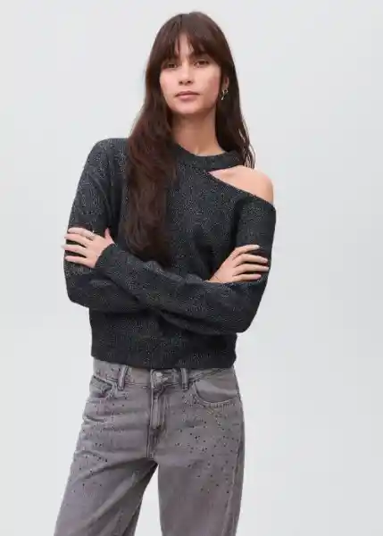 Cuello Puños y Bajo en Canalé Detalle Cut Out Diseño Oversize Manga Larga Tejido de Lúrex Tejido de Punto - 17006337_56.