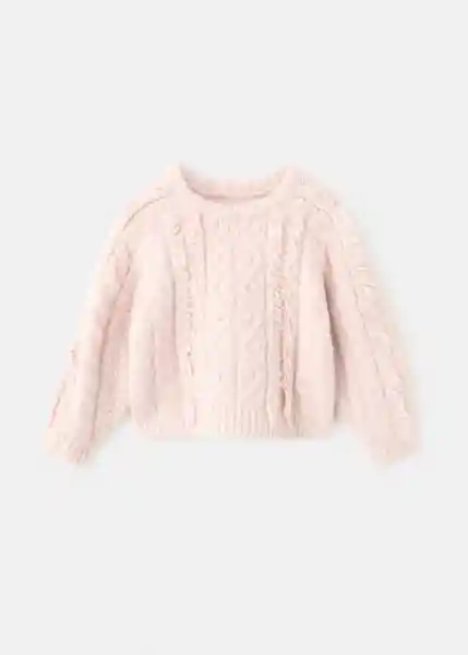 Cuello Redondo Cuello Puños y Bajo en Canalé Detalle de Flecos Diseño Recto Manga Larga Tejido de Lana Tejido Punto Trenzado - 17007795_85.