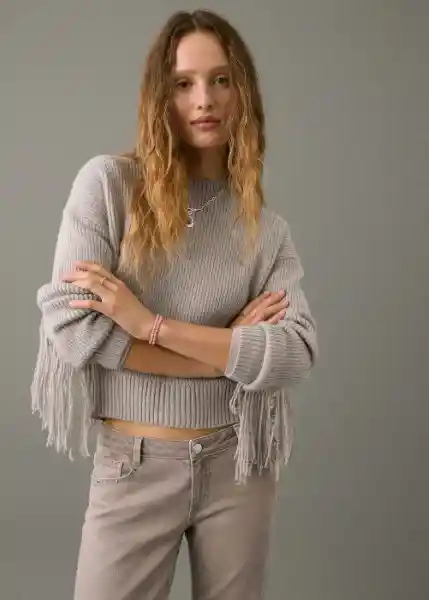 Aplique de Flecos Cuello Redondo Diseño Recto Fantasía Flecos Manga Larga Panel de Flecos Punto Grueso Tejido de Punto - 17008275_35.