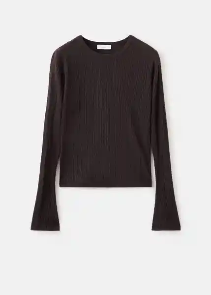 Cuello Redondo Diseño Recto Manga Larga Acampanada Tejido de Canalé Tejido Fino - 27012551_30.