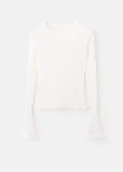 Cuello Redondo Diseño Recto Manga Larga Acampanada Tejido de Canalé Tejido Fino - 27012552_02.