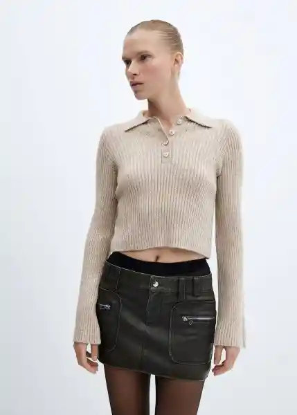 Cuello Polo Con Cierre de Botones Diseño Canalé Diseño Recto Manga Larga Acampanada Tejido de Punto - 57096023_07.