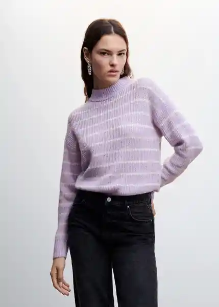 Cuello Perkins Detalles de Lúrex Diseño Recto Disponible Plus Estampado de Rayas Manga Larga Punto Medio Terminaciones de Canalé - 47091264_68.