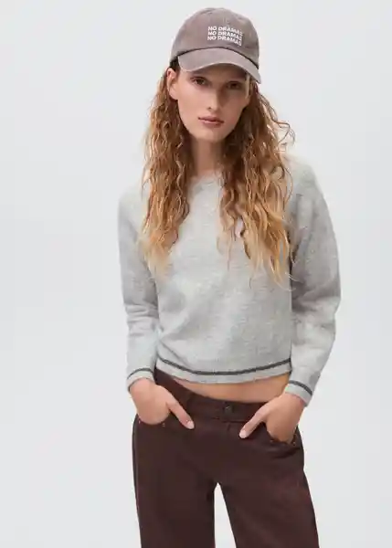 Bordado en Forma de Rayo Bordado en la Parte Posterior Cuello Redondo Detalle de Raya Bordada en Mangas y Bajo Diseño Recto Manga Larga Tejido de Punto - 17016336_91.