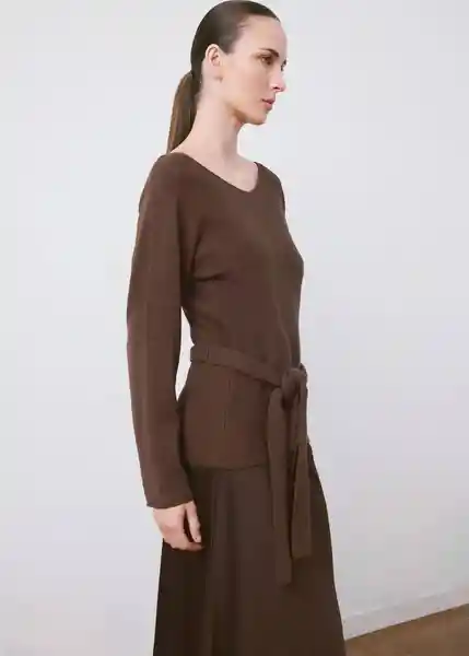 Cuello Pico Detalle Cinturón en la Cintura Diseño Recto Manga Larga Sin Cierre Tejido 100% Algodón Tejido de Punto Medio Trabillas - 27065819_32.