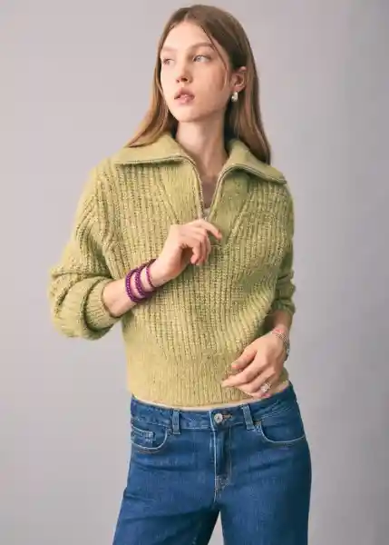 Cuello Perkins Con Cremallera Diseño Recto Manga Larga Tejido de Canalé Tejido de Punto - 17007130_14.