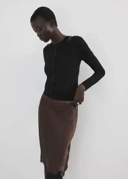Cierre Delantero Con Botones Cuello Redondo Diseño Combinado Diseño Recto Manga Larga Tejido de Punto Fino - 27065979_99.