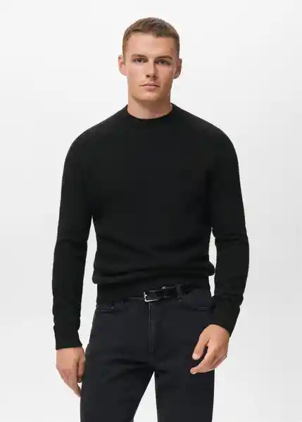 Bajo Recto Cuello Redondo de Canalé Cuello Puños y Bajo en Canalé el Modelo Mide 190 cm y Lleva Una Talla M Manga Larga Punto Grueso Silueta Recta Tejido 100% Lana Extrafina - 17007907_99.