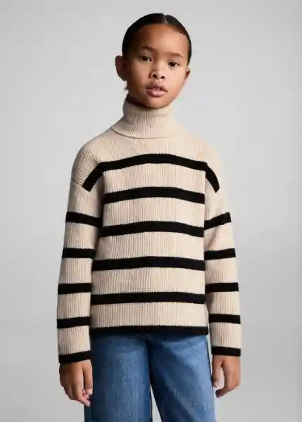 Cuello Alto, Diseño de Rayas, Diseño Recto, Manga Larga, Tejido de Punto Grueso - 77015989_07.