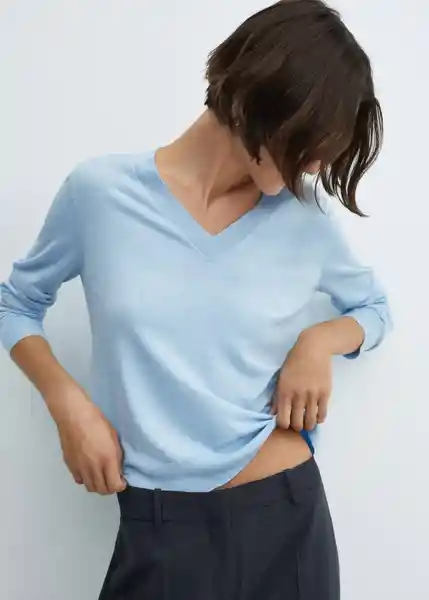 Cuello Pico Diseño Recto Disponible Plus Manga Larga Sin Cierre Tejido de Punto Fino Terminaciones en Canalé - 67084047_50.