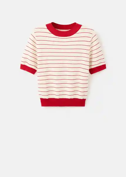 Cuello Redondo Diseño Recto Estampado Rayas Manga Corta Sin Cierre Tejido de Punto Fino - 27092540_70.