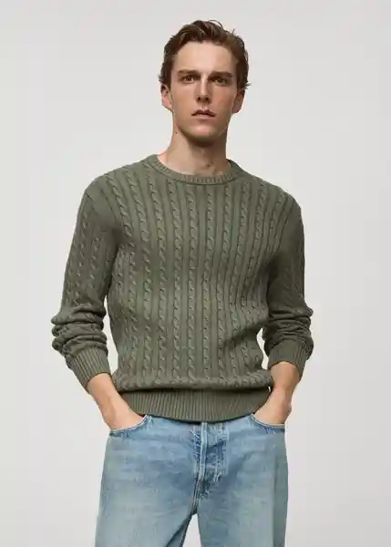 Bajo Recto, Cuello Redondo, Diseño Recto, Diseño Trenzado, el Modelo Mide 190 cm y Lleva Una Talla M, Manga Larga, Punto Medio, Tejido Mezcla de Algodón y Lana, Terminaciones en Canalé en Manga y Bajo - 77005980_48.