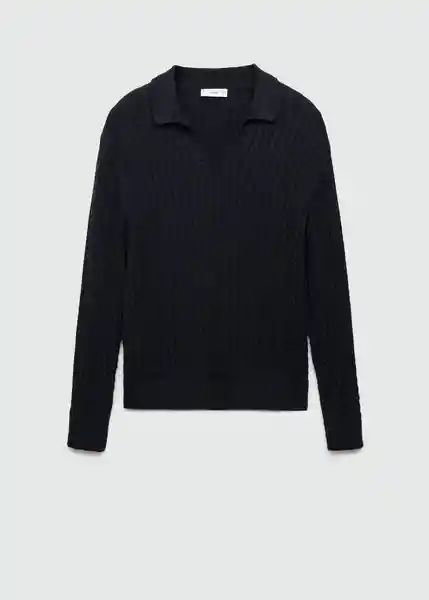 Bajo Recto, Cuello Polo Acabado en Pico Sin Cierre, Diseño Trenzado, el Modelo Mide 190 cm y Lleva Una Talla M, Manga Larga Con Puños Elásticos, Punto Medio, Regular Fit, Tejido Mezcla de Algodón y Lana, Terminaciones de Canalé en Cuello, Manga y Bajo - 77005982_56.
