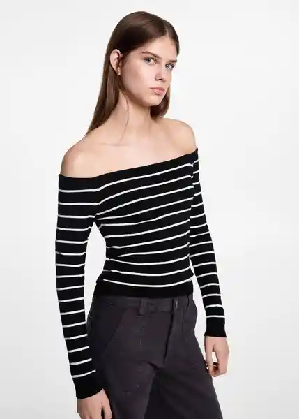 Diseño Largo, Diseño Recto, Hombros Descubiertos, Manga Larga, Tejido de Canalé, Tejido de Rayas - 77052932_99.