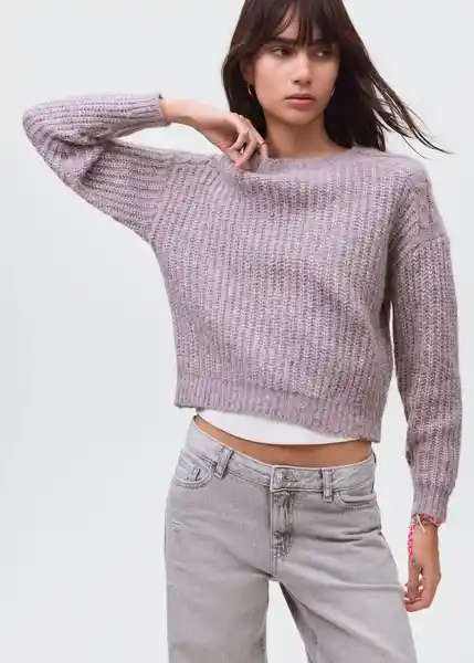 Cuello Redondo Cuello Puños y Bajo en Canalé Diseño Recto Manga Larga Tejido de Lana Tejido de Punto Grueso - 17056330_68.